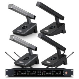 6. 四聯(lián)屏LCD顯示屏,顯示工作信道、工作頻點(diǎn)、RF接收信號、AF音頻信號、鎖屏指示、會議座實(shí)時(shí)電量,實(shí)時(shí)反饋系統(tǒng)工作狀態(tài);